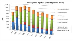 The tables represent all lots that are in the process of development within unincorporated areas. Data is presented as of 12/2025.